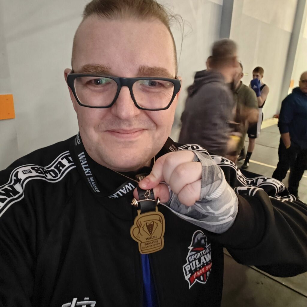 Dziś członek zarządu naszego Stowarzyszenia Piotr Rodzoch po raz drugi wziął udział w gali Walk Białych Kołnierzyków we Włocławku. W wadze ciężkiej, w połowie drugiej rundy, odniósł zwycięstwo przez TKO
